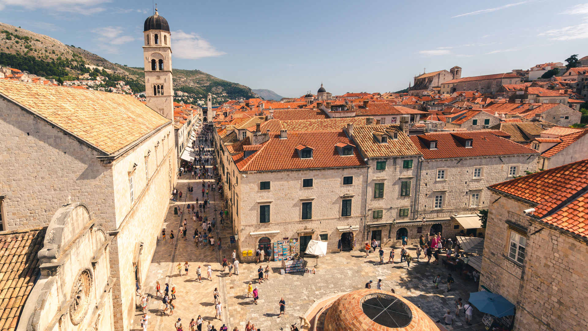You are now free to explore the town at your own pace. Feel free to climb the city walls and walk the full 1.24-mile (2-kilometre) circuit, offering breathtaking views across a sea of terracotta tiles and the boats and cruise liners in the bustling port. Try some authentic Croatian dishes in local taverns, or simply enjoy a cup of coffee in an al fresco café and watch the world go by.